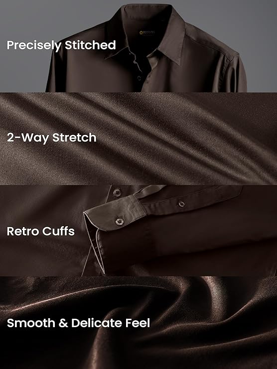 - Luxurious Fabric: Satin shirts are crafted from premium cotton lycra, known for its soft sheen and glossy surface that effectively repels moisture. It is lightweight and gentle on the skin.